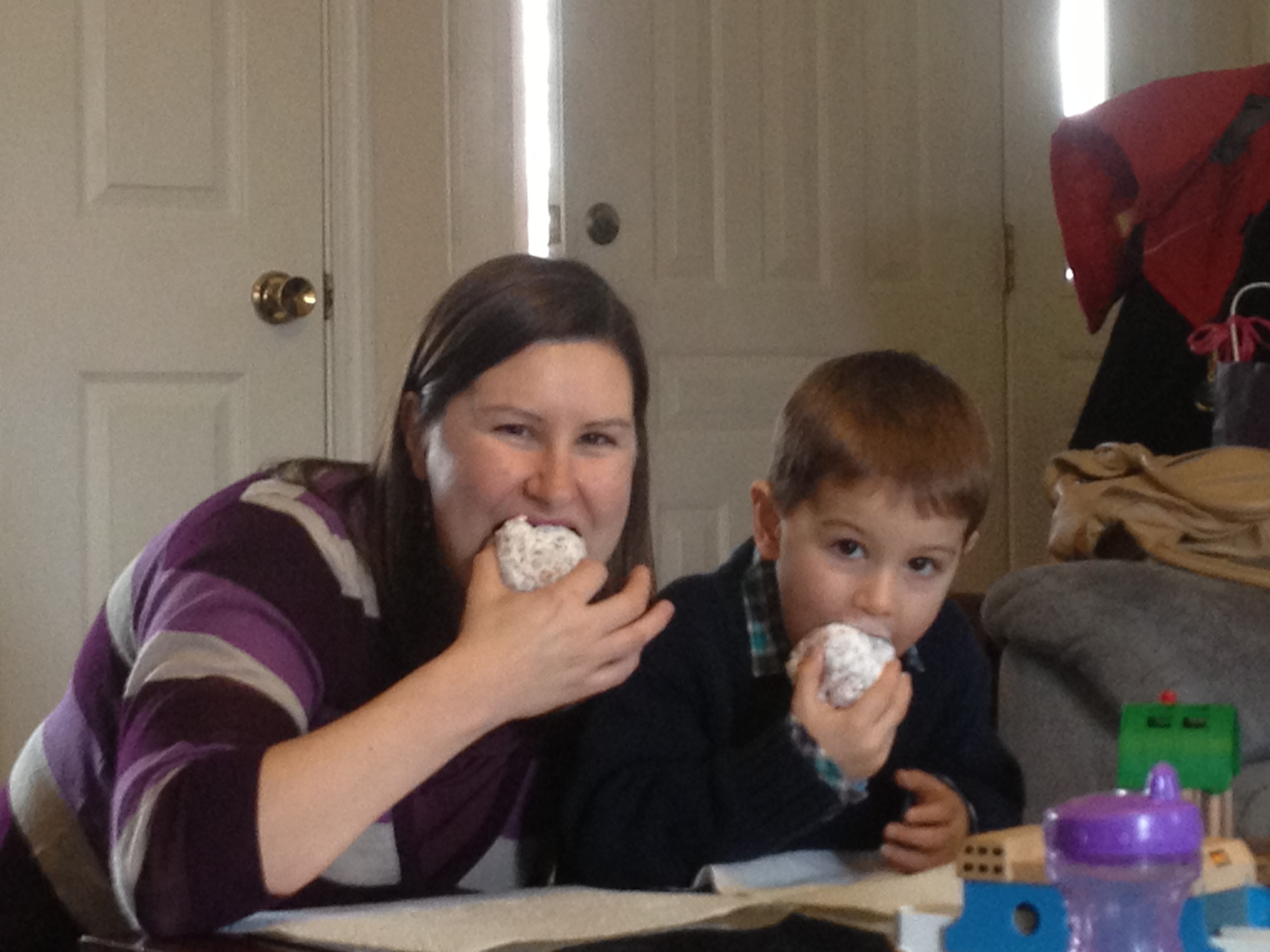 There was a lot of Valentine’s love going around yesterday. Ryan bought me beautiful roses. Then Michael and I decided to make Valentines for his friends and family. (What else am I going to do with 32 wallet photos from his four year portraits?) We also ate (more) doughnuts. Who could ask for anything more?