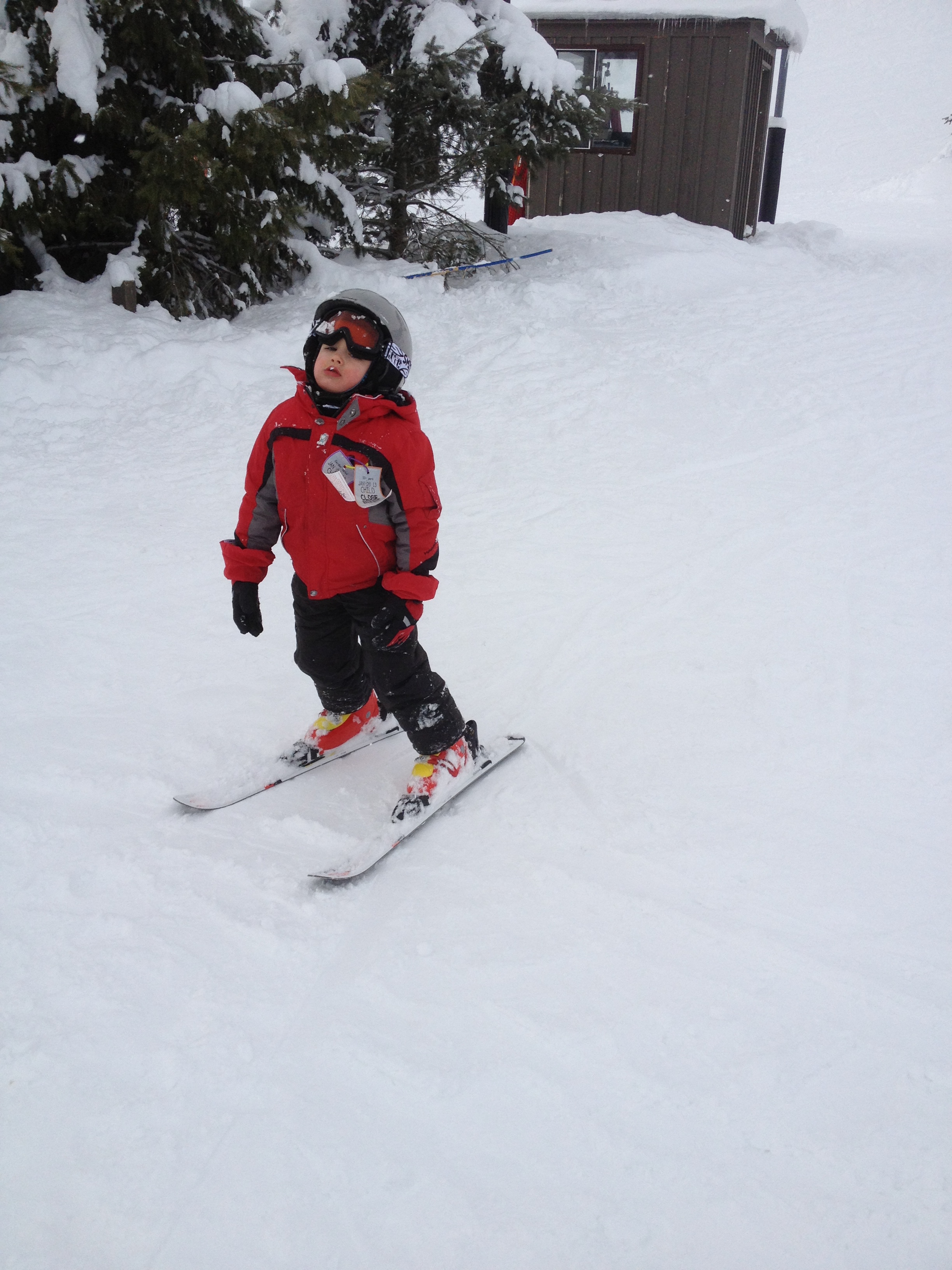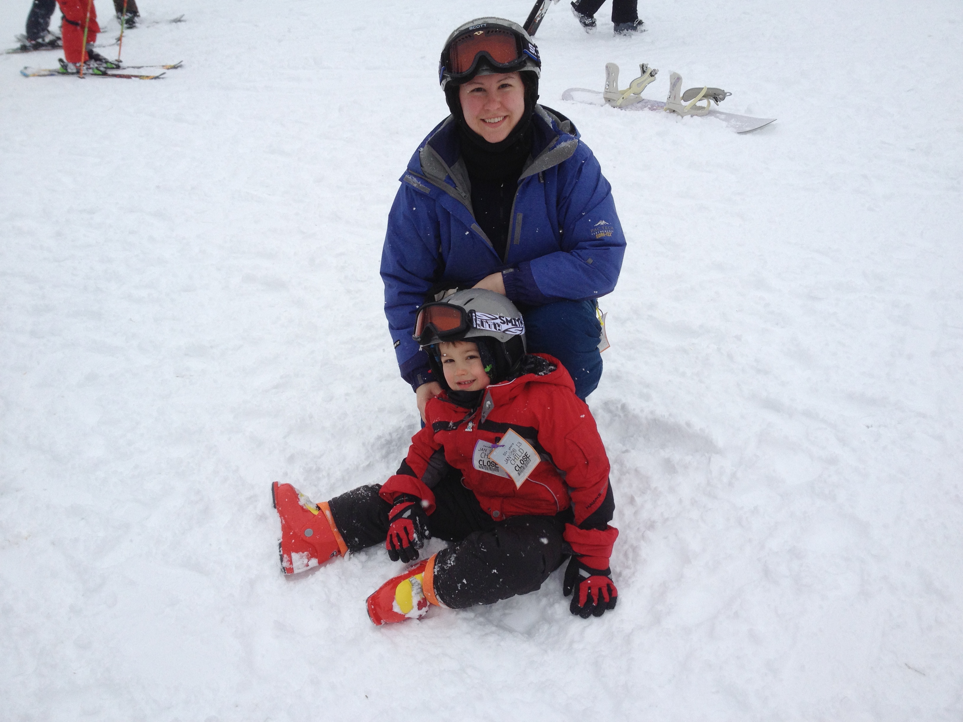 Our family took a ski vacation last weekend.  Ryan used to ski in high school and has always wanted to share this sport with Michael and me.  So we gathered random gear from family, packed up the car and headed north to the “mountains”.  It turned out to be a super fun challenge.  I got the hang of skiing during my first afternoon (despite some unexpected adventures on the more advanced blue slopes).  Ryan used a harness to guide Michael, allowing him to gain experience on the real slopes from the start.  He also seemed to take to the sport quickly.  We closed our second day on the bunny hill so Michael could try skiing without the harness (his favorite part of the trip).  It was amazing to watch our son glide down the hill with confidence and ease.  I have a feeling that skiing will be a cherished family activity in the years to come.